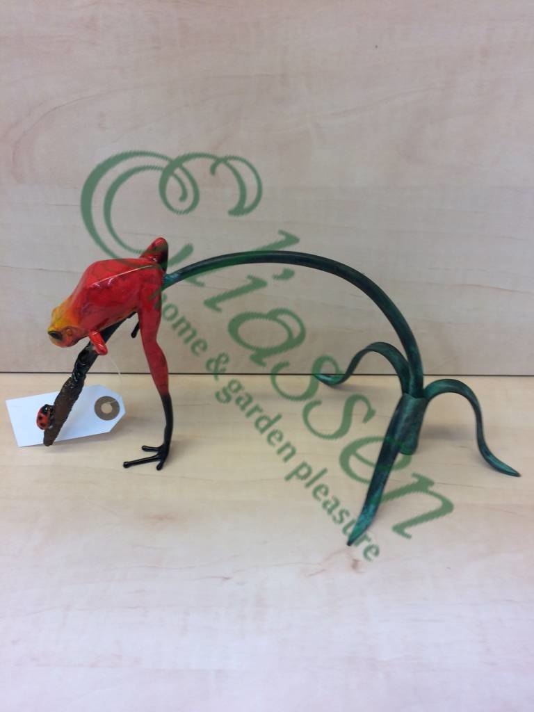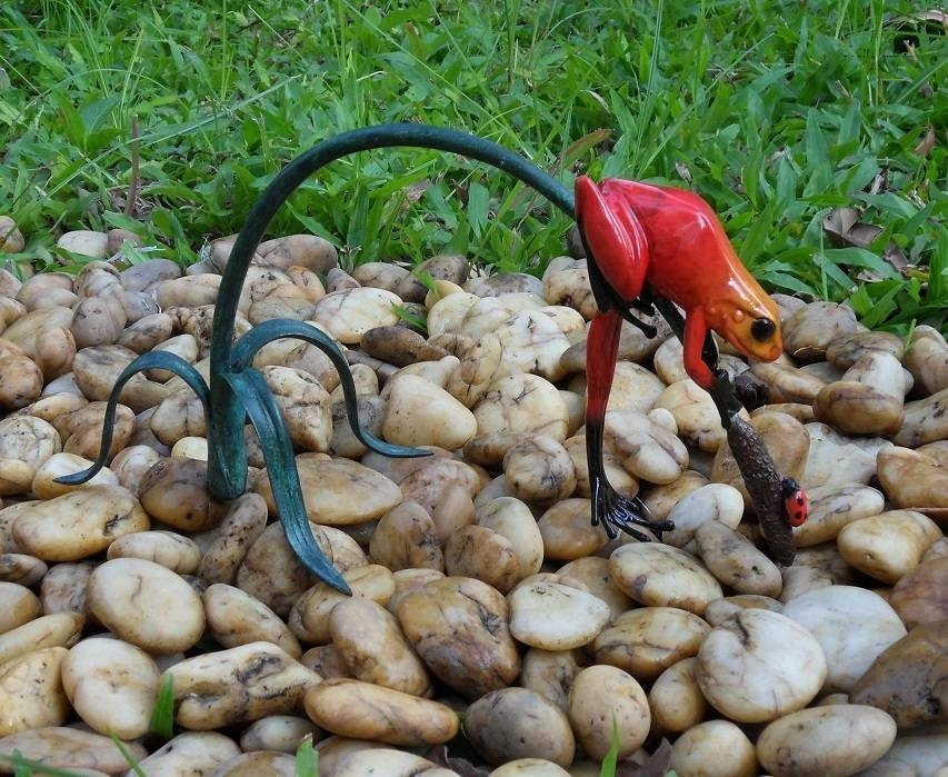 De kleur van deze kikker is op het brons geverfd, de kleur kan na enige tijd enigzins wat dof worden.