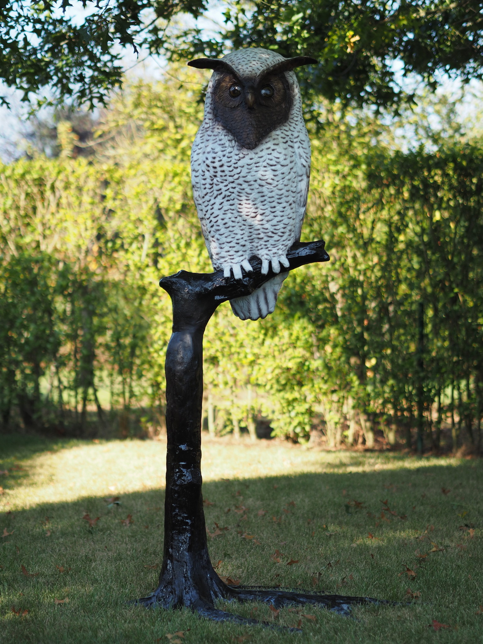 Mooi beeld van een uil op een tak van hoogwaardig brons met een minimale kopergehalte van 75% waardoor een zeer lange levensduur gegarandeerd is.
