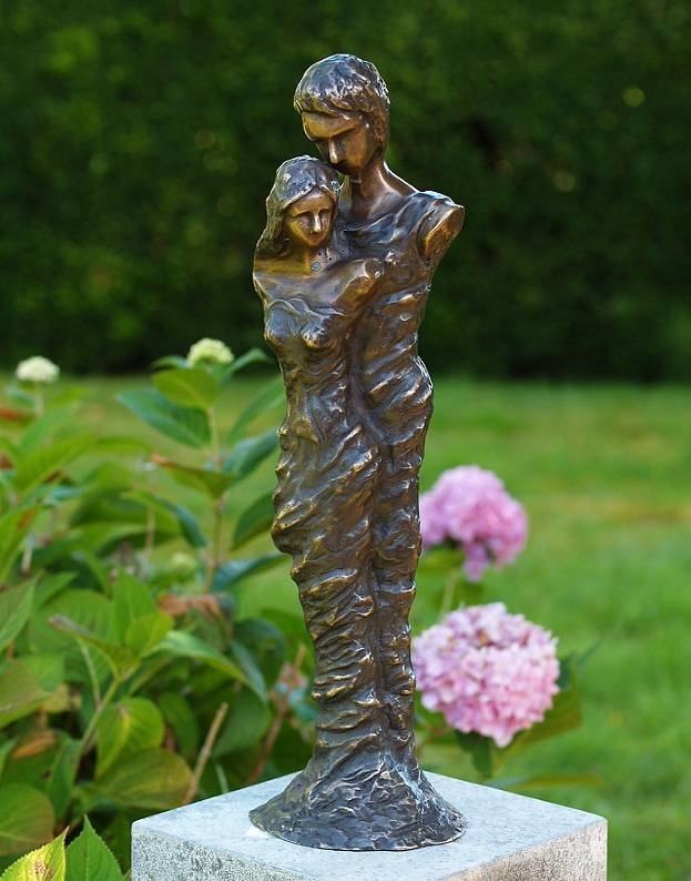 Mooi beeld van een verliefd stel van hoogwaardig brons met een minimale kopergehalte van 75% waardoor een zeer lange levensduur gegarandeerd is.
