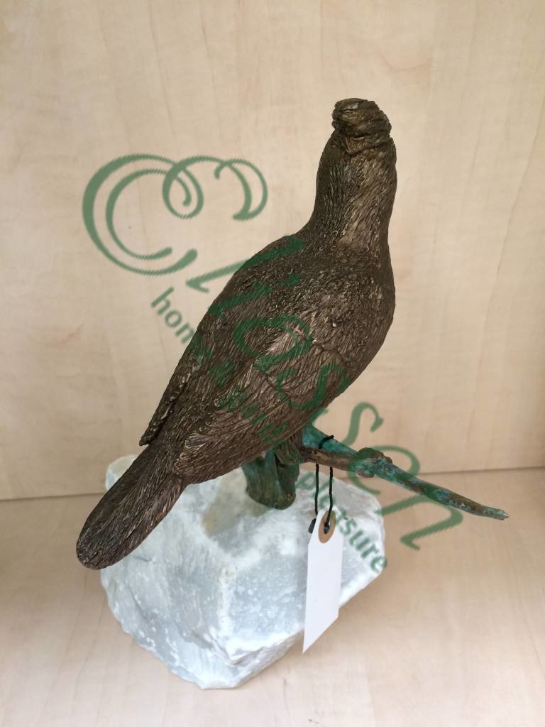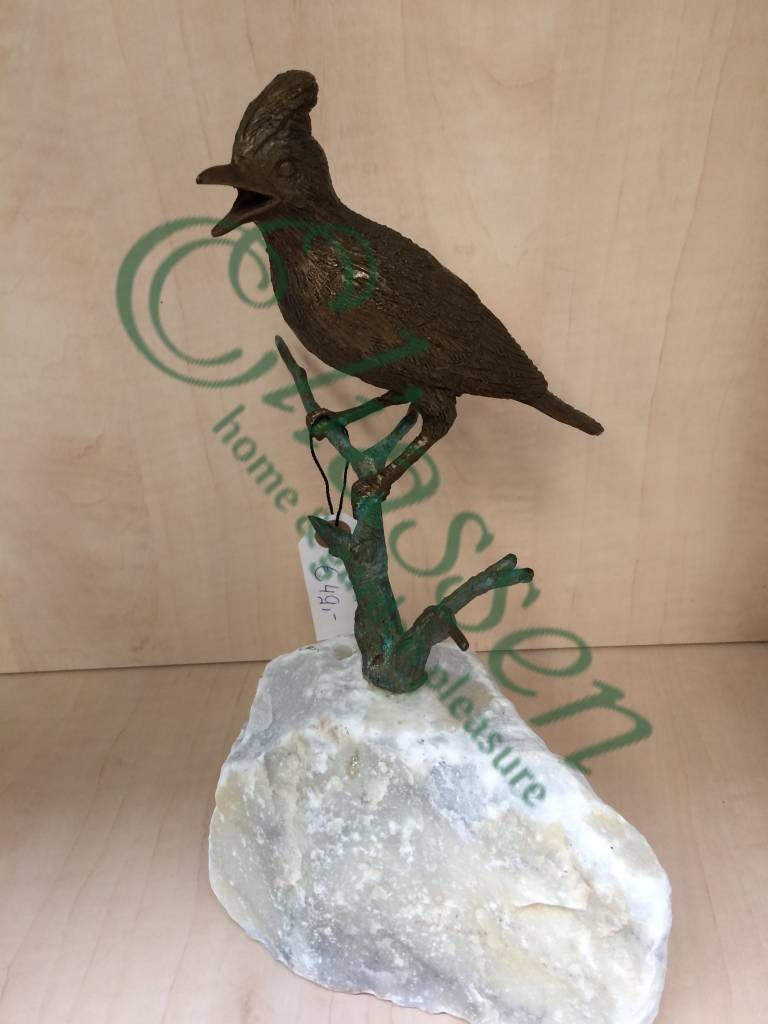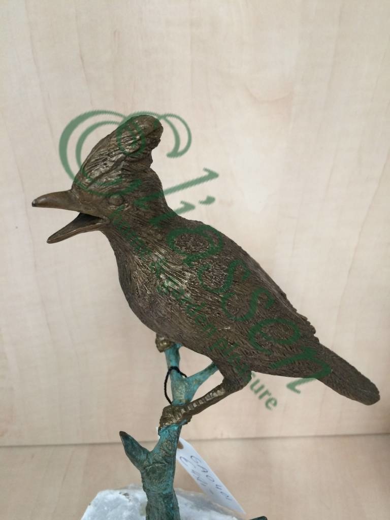 Mooi beeld van een vogel op een tak van hoogwaardig brons met een minimale kopergehalte van 75% waardoor een zeer lange levensduur gegarandeerd is.