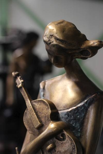 Beeld brons vrouw met viool
