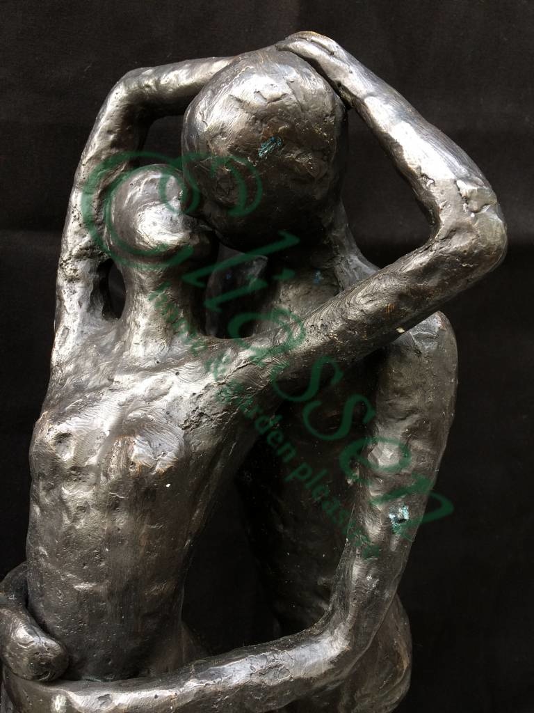 Mooi beeld van een zoenend liefdespaar van hoogwaardig brons met een minimale kopergehalte van 75% waardoor een zeer lange levensduur gegarandeerd is.