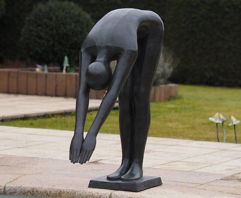 Mooi beeld van zwemmer Christophe van hoogwaardig brons met een minimale kopergehalte van 75% waardoor een zeer lange levensduur gegarandeerd is.