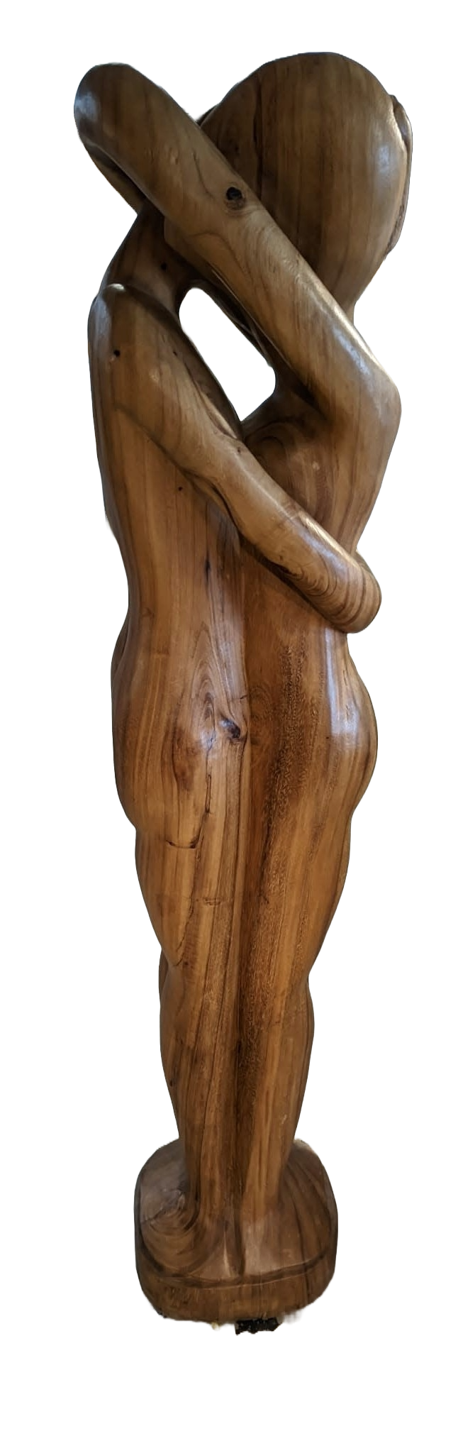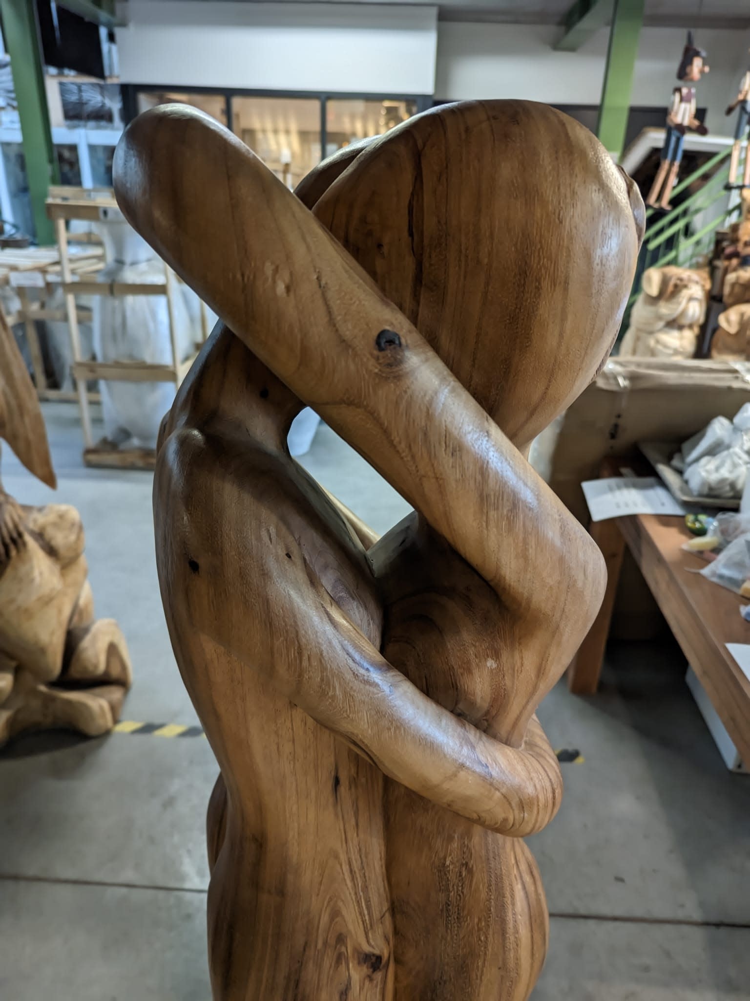 Prachtig stukje vakwerk, deze imposante liefdeskoppel met abstracte vorm, handmatig gemaakt van massief Suar hout.