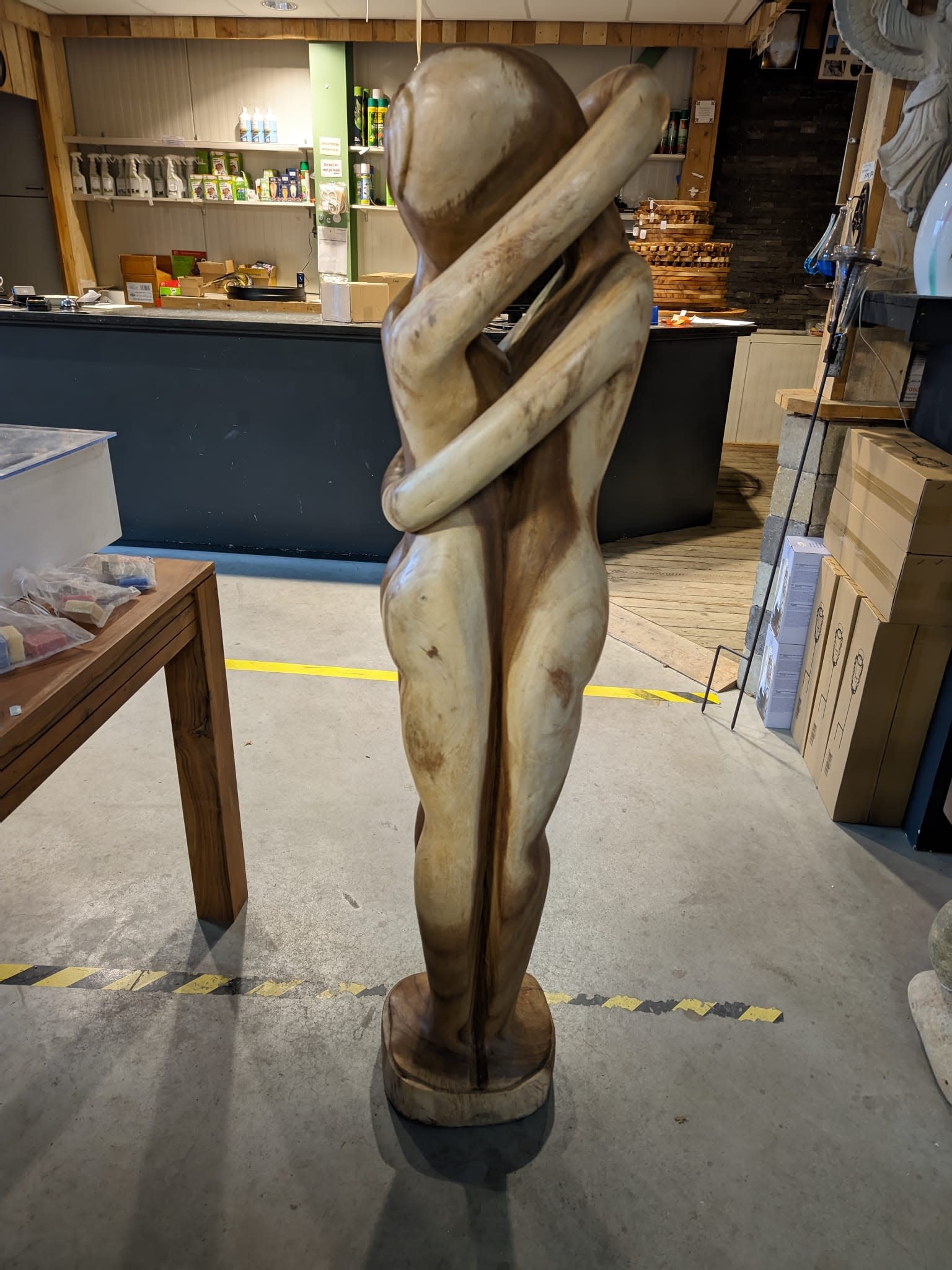 Beeld hout abstract liefdeskoppel man en vrouw 150cm