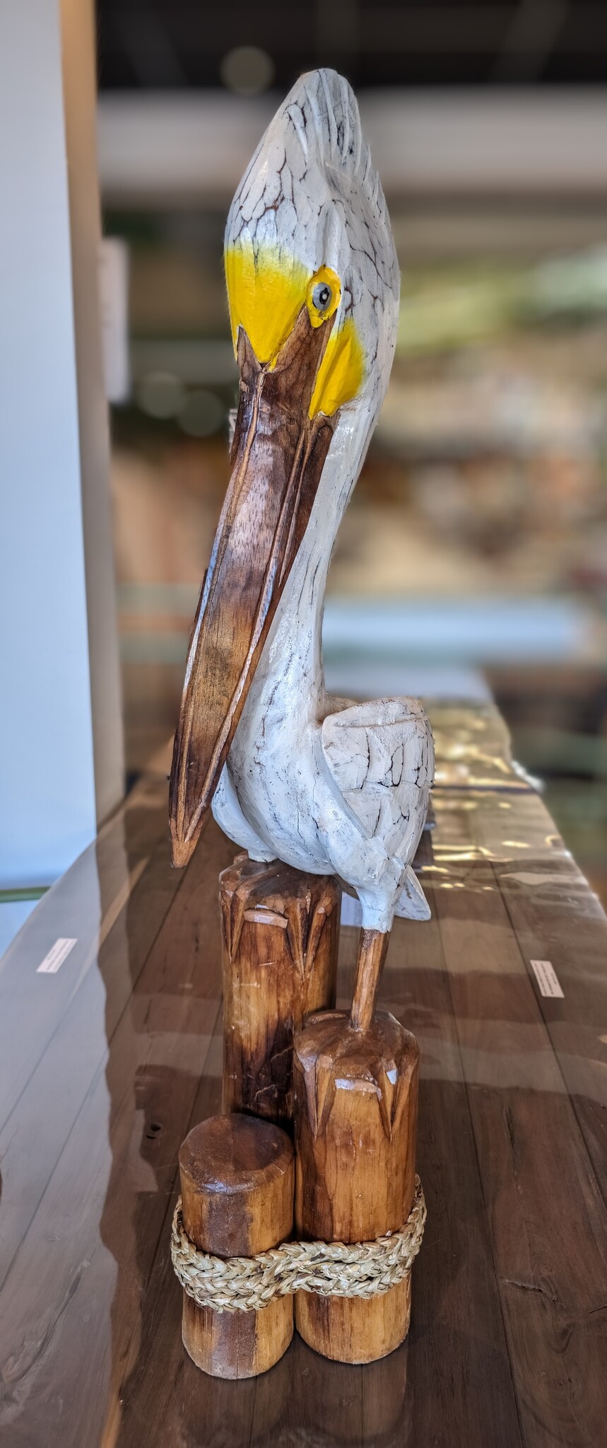 Houdt u van hand gemaakte producten? Dan deze handgesneden Pelikaan op meerpaal u zeker aanspreken.