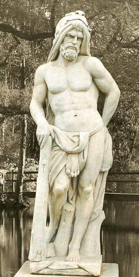 Groot klassiek beeld Hercules afmeting 45x40x173cm hoog.