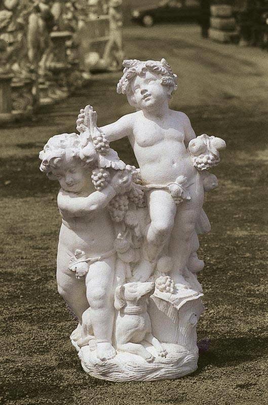 De beelden uit deze serie zijn allemaal gemaakt van massief hoogwaardig beton met een zeer hoog cement gehalte, waardoor al deze beelden met gemak alle weersinvloeden decennia lang kunnen weerstaan. U heeft de mogelijkheid dit beeld in 3 kleuren te bestellen, in de kleuren zandkleur, antiekkleur en roestkleur. De kleuren kunnen in het echt van de foto afwijken omdat het kleuren mensen werk is. Dit barokke betonnen beeld met de afbeelding van een tweetal kinderen en een hondje omringd met trosjes druiven zal decennia lang de juiste sfeermaker zijn! Door weersinvloeden zal de uitstraling van dit beeld na jaren alleen maar mooier worden.