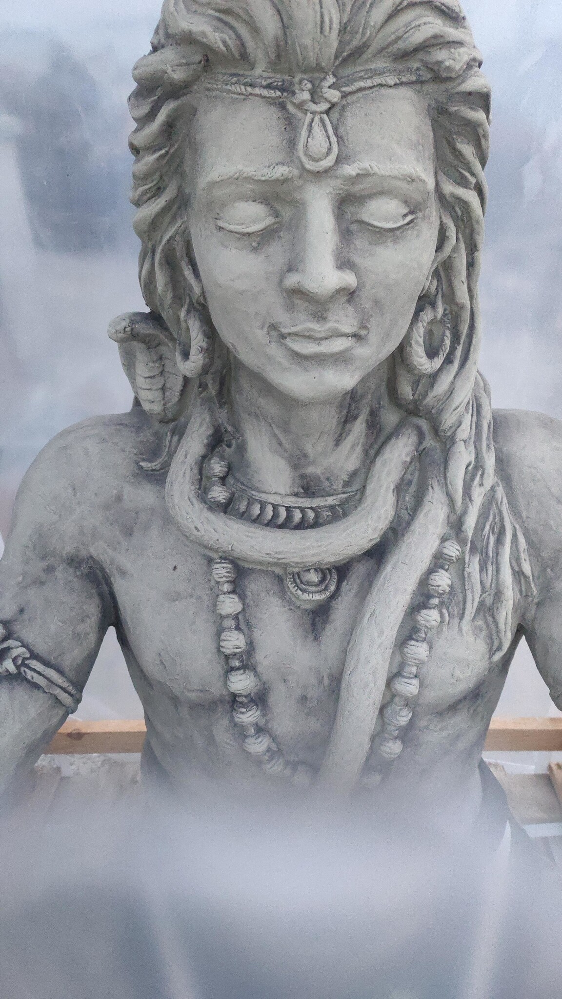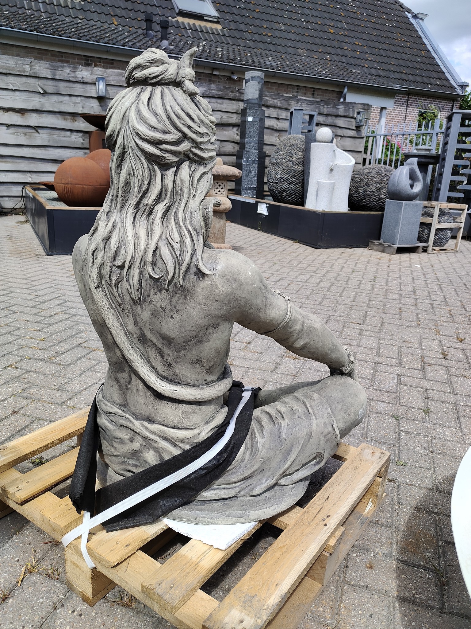 Een mediterende shiva gelovige .Groot zwaar beeld , van massief gietsteen, Maar liefst 90cm hoog en 150 kg zwaar, mooi gedetailleerd.