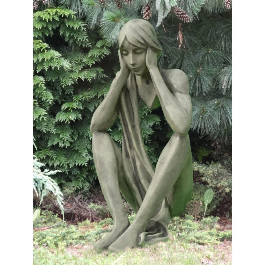 Een bijzonder mooi en modern beeld van een nadenkende man , in een relaxte rust houding. Gemaakt van het allerbeste gietsteen. Mooi gedetailleerd.