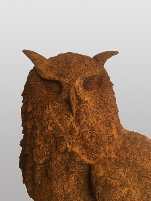 Beeld Uil op tak gietijzer roest 60cm