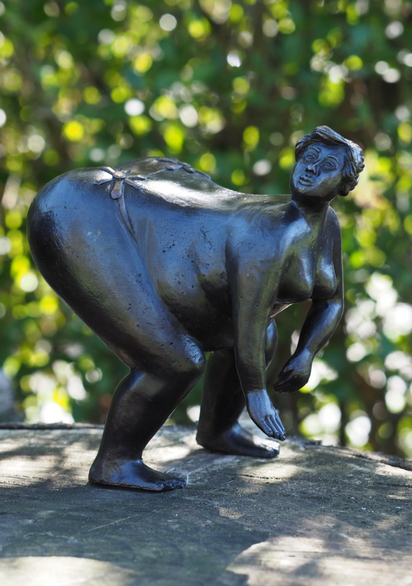 Mooi modern beeld van een dikke vrouw. Gemaakt van 100% hoogwaardig brons met een minimale kopergehalte van 75% waardoor een zeer lange levensduur gegarandeerd is en geen lelijke vlekken ontstaan. Een prachtig en duurzaam decoratie object voor huis , bedrijf of tuin, maar ook voor een prachtig geschenk.