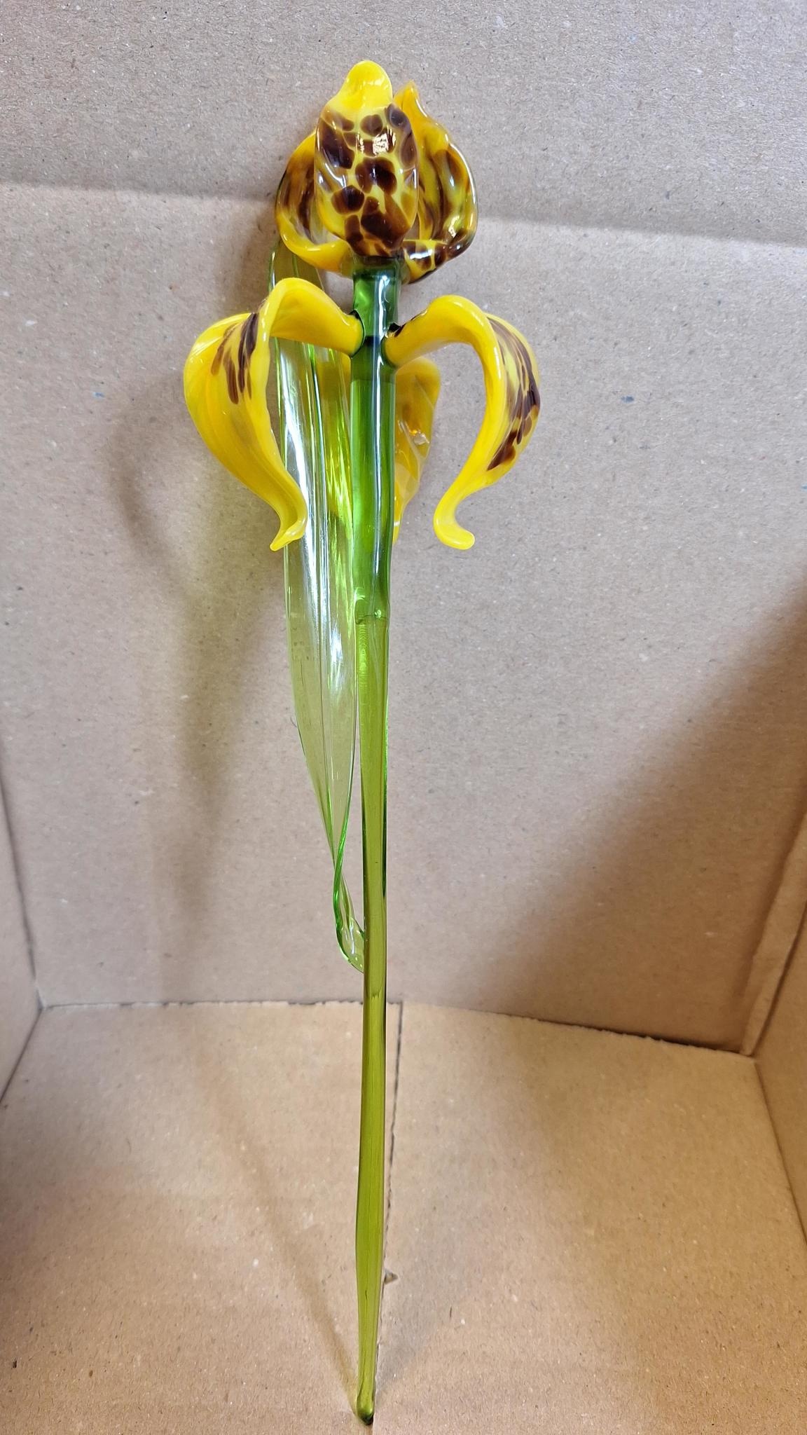 Bent u een liefhebber van glazen voorwerpen?, dan zult U deze tijger gele iris ook wel mooi vinden.