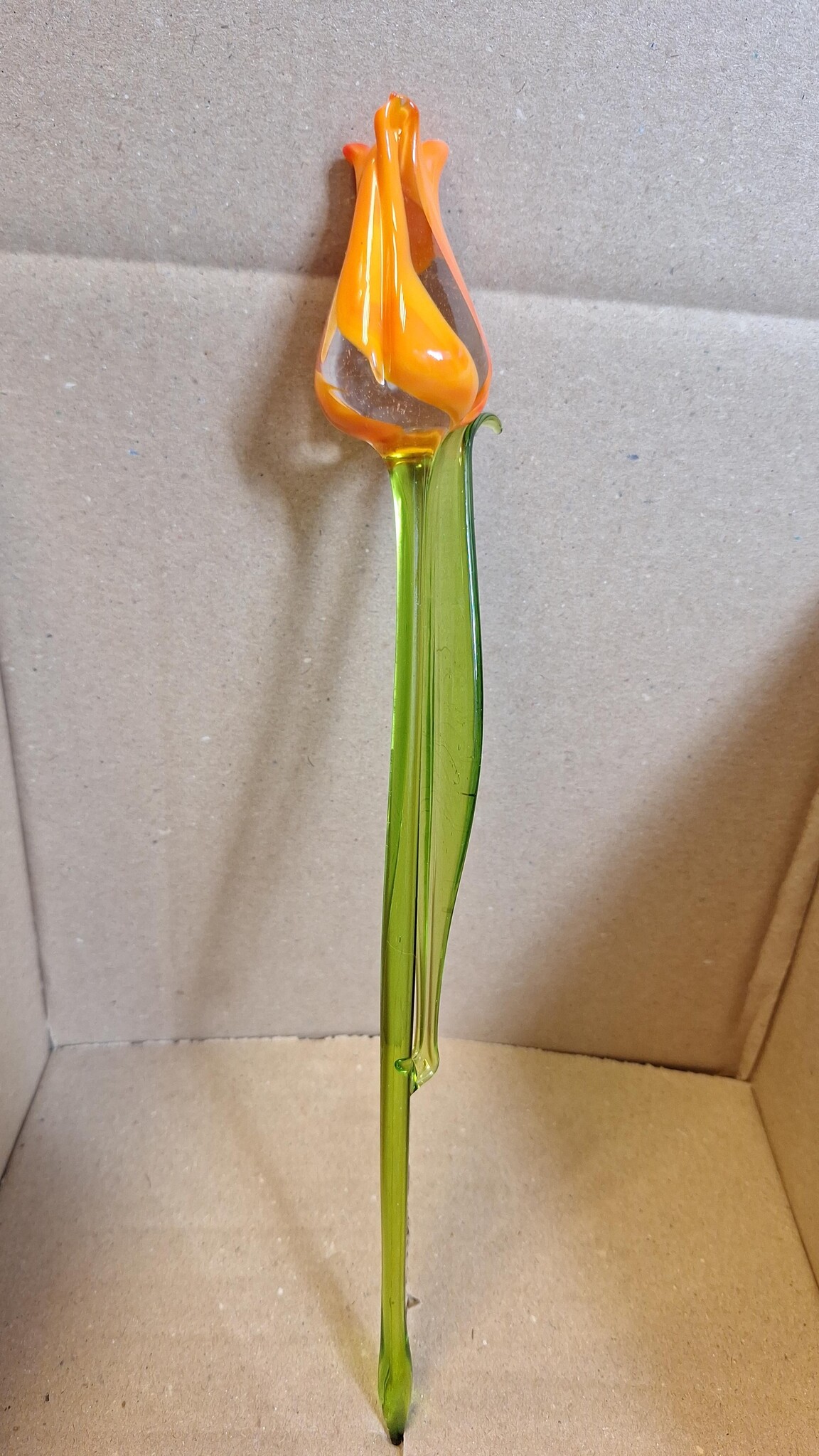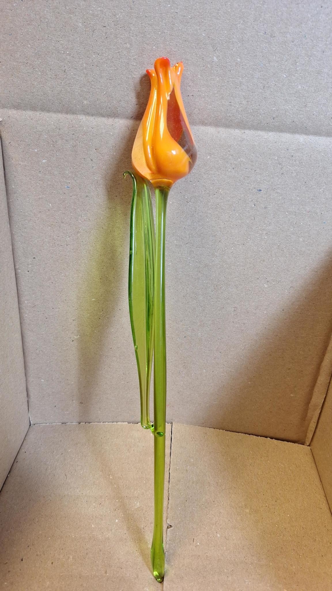 Bent u een liefhebber van glazen voorwerpen?, dan zult U deze oranje tulp ook wel mooi vinden.