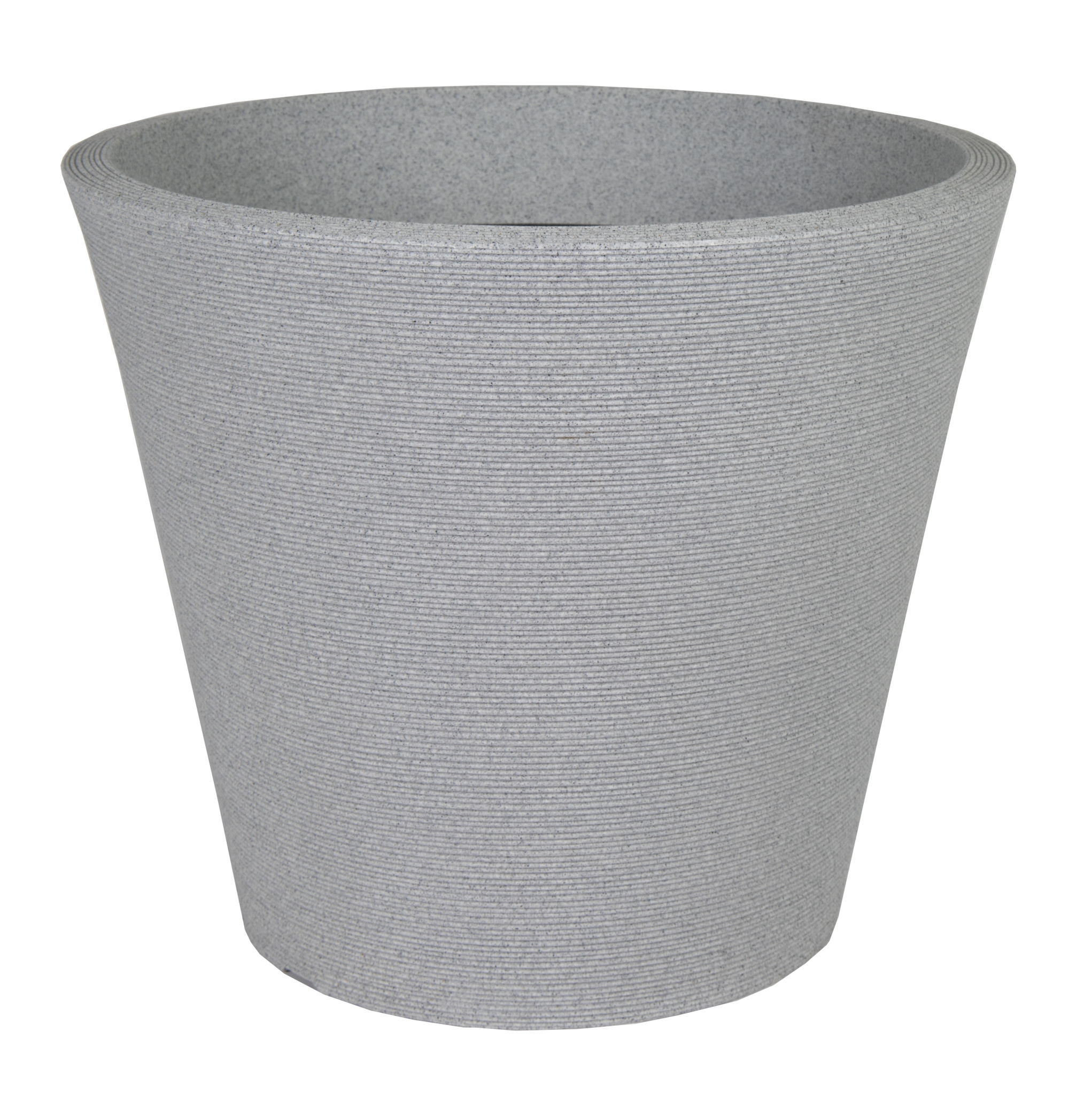 Wilt u een grote ronde moderne bloempot in lichtgrijze kleur, die geschikt is voor palmen, olijfbomen of andere mediterrane planten, die zeer sterk is, kleurvast, en licht van gewicht is, dan is de keuze voor deze pot snel gemaakt.