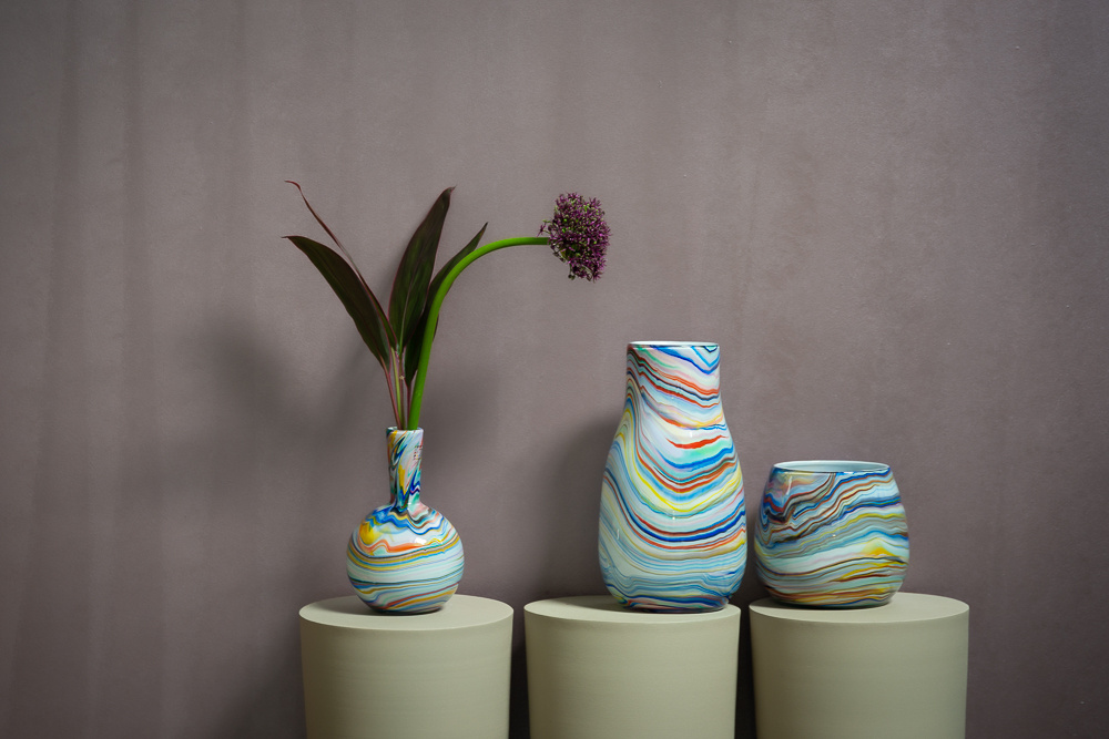 Alle glasvazen van Fidrio zijn handmatig gemaakt op de traditionele, ambachtelijke wijze. Het bewerkbare super hete glas wordt in een houten mal geblazen, waarbij de mal als basisvorm dient, maar  de kleurschakeringen en daarmee ook de uitstraling zullen bij elke vaas anders zijn. De opgegeven maten zijn altijd Circa maten.