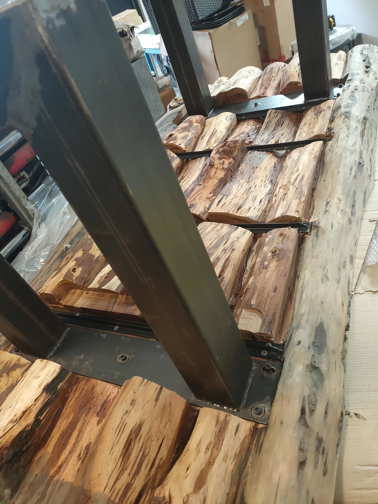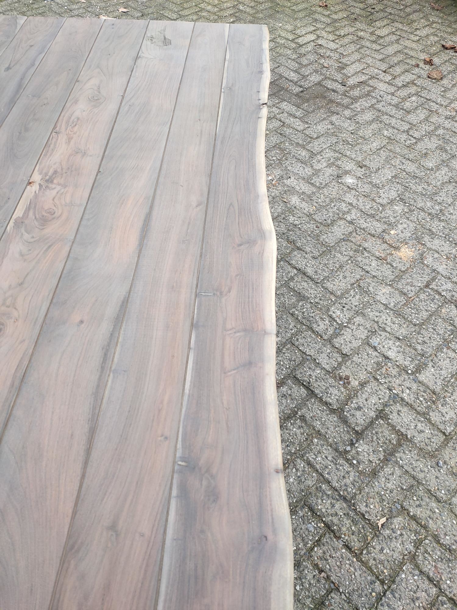 Dit zware massieve blad is variabel van dikte 8-15cm en heeft de maat 100x180cm.