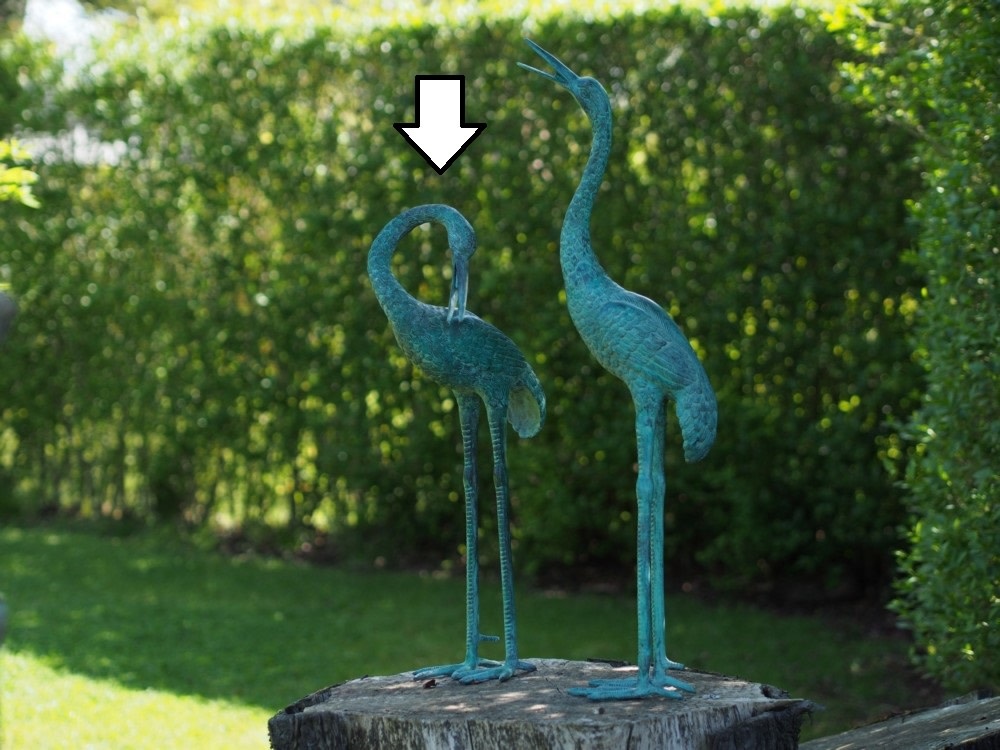 Dit tijdloze beeld van een kraanvogel die naar beneden kijkt heeft de maat 27x14x64cm en is op ambachtelijke wijze gemaakt met de zogenoemde verlorenwas methode.