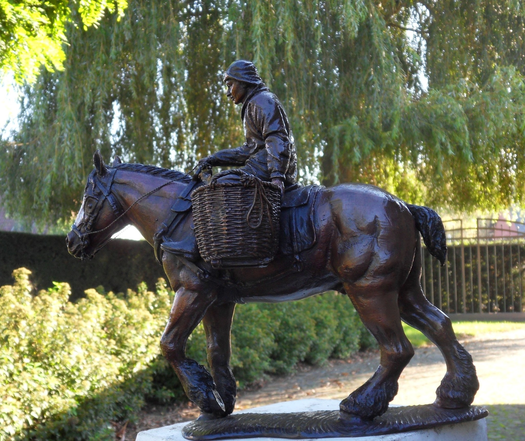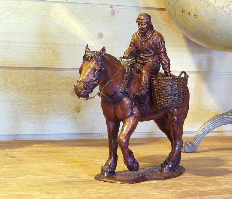 Mooi beeld van een paard met ruiter van hoogwaardig brons met een minimale kopergehalte van 75% waardoor een zeer lange levensduur gegarandeerd is.