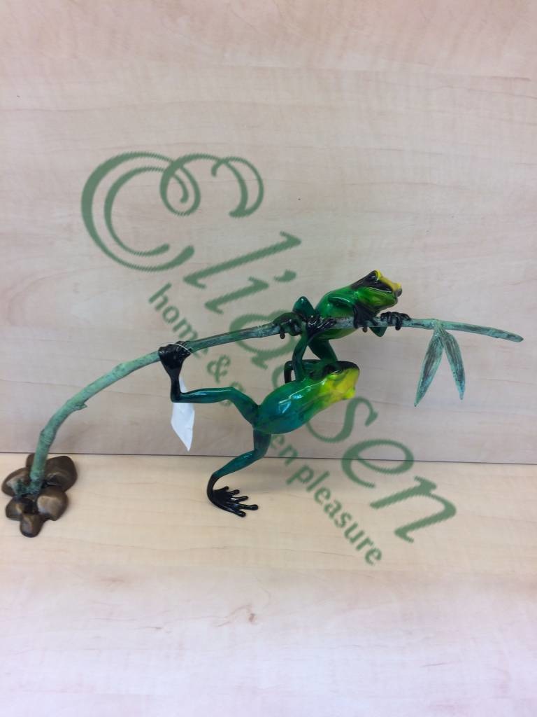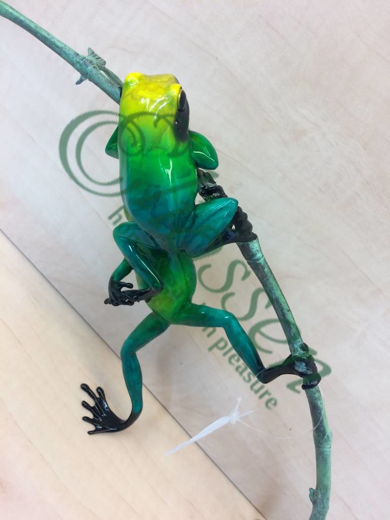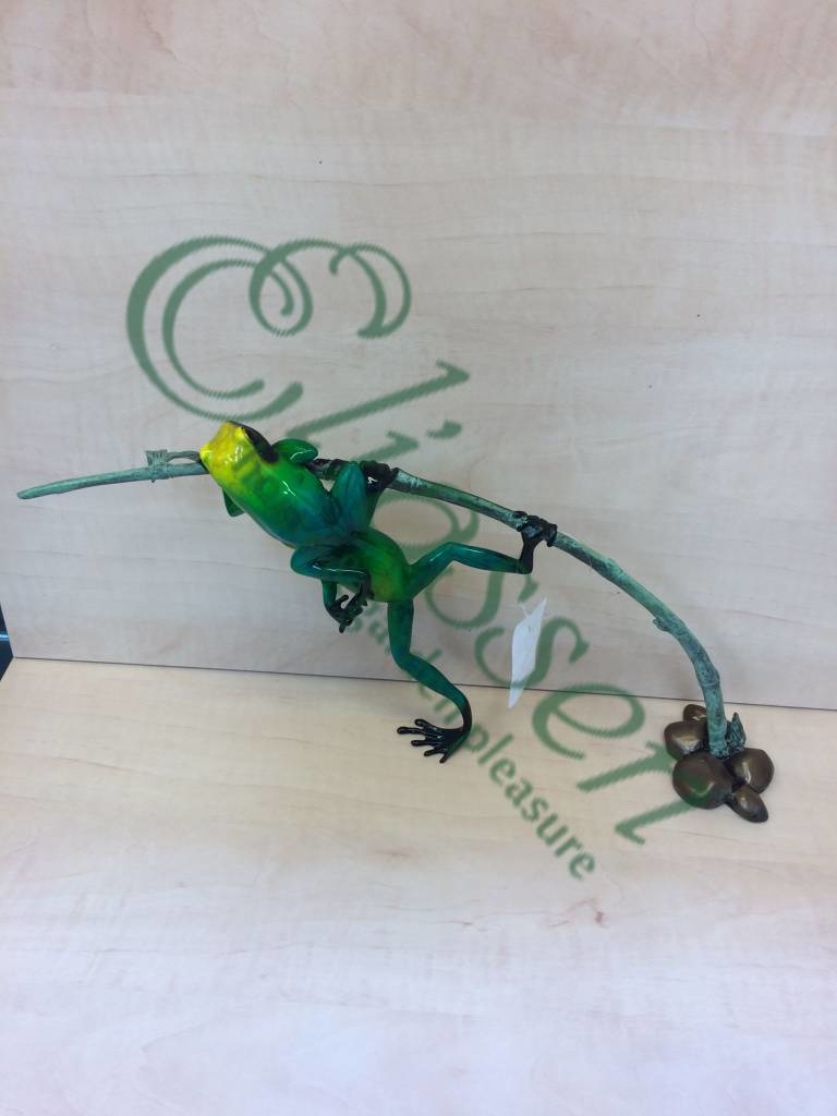 De kleur van deze kikker is op het brons geverfd, de kleur kan na enige tijd enigzins wat dof worden.