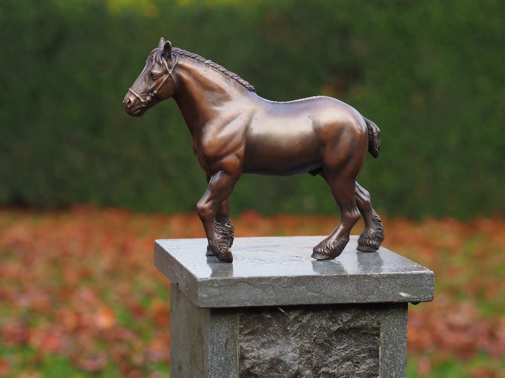Dit bronzen model van een boeren paard is een mooi stuk voor jezelf of om kado te doen bij een feest of jubileum.
