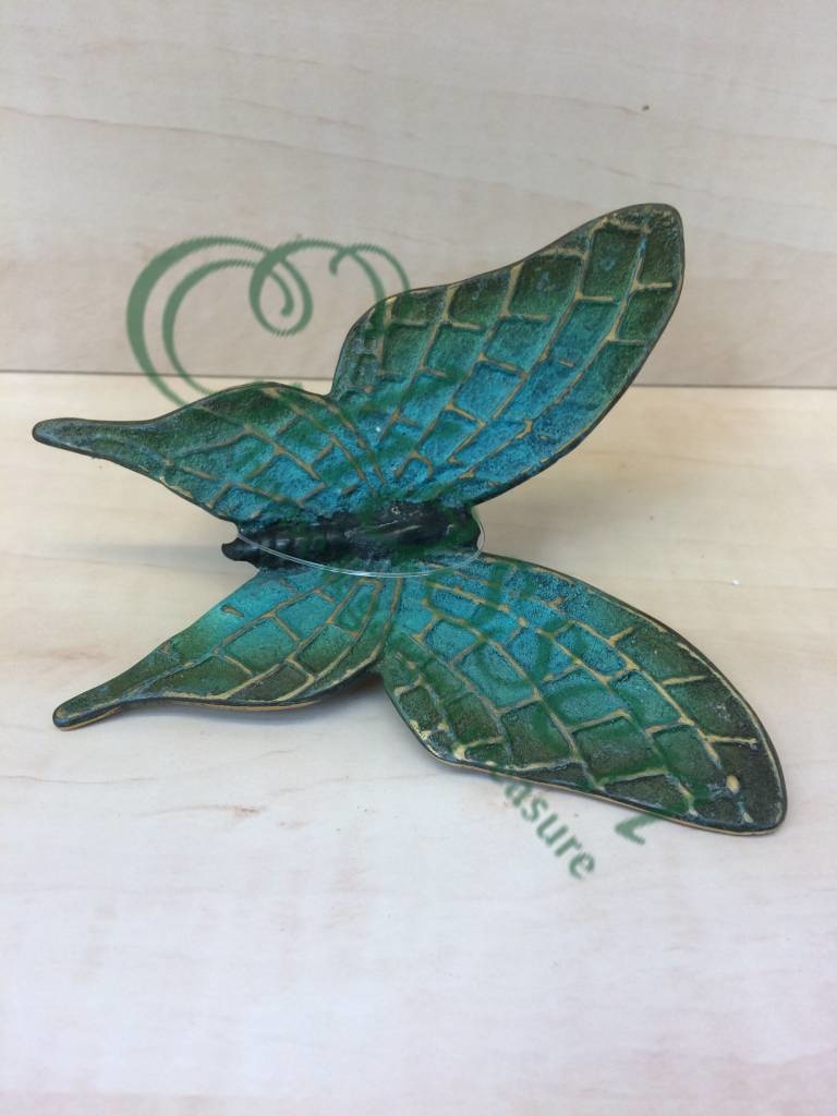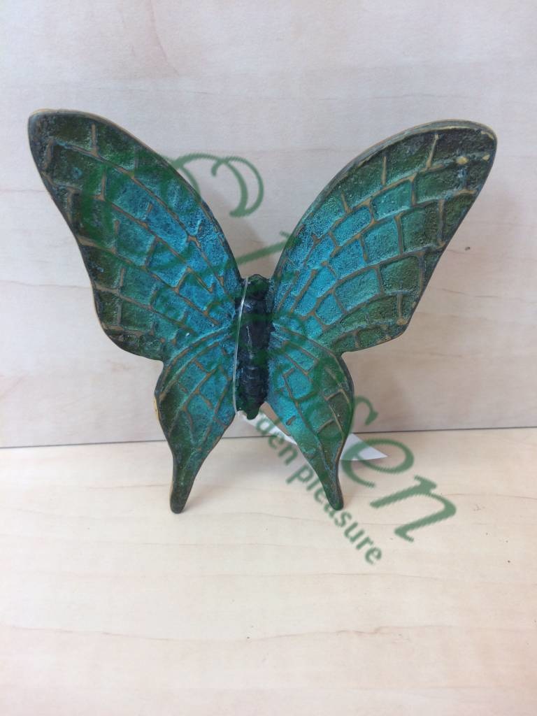 Mooi beeldje van een groene vlinder van hoogwaardig brons met een minimale kopergehalte van 75% waardoor een zeer lange levensduur gegarandeerd is.