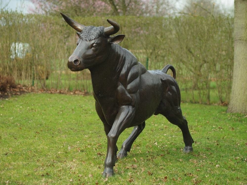 Mooi bronzen beeld van grote stier van 100% hoogwaardig brons met een minimale kopergehalte van 75% waardoor een zeer lange levensduur gegarandeerd is en geen lelijke vlekken ontstaan.  Een prachtig en duurzaam decoratie object voor huis , bedrijf of tuin, maar ook voor een prachtig geschenk. Zoekt een een bronzen beeld voor een jubilaris? Wij kunnen ook tekstplaatjes voor op de sokkel voor u verzorgen.