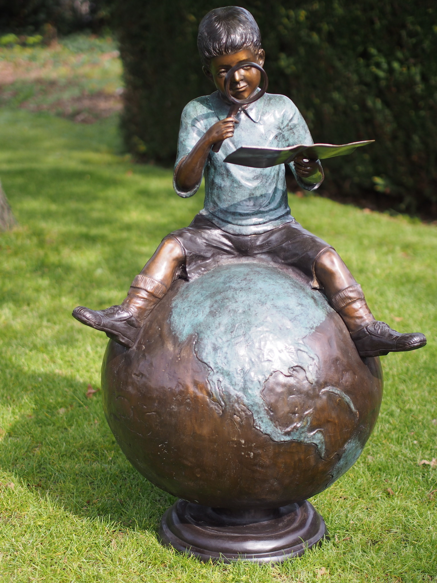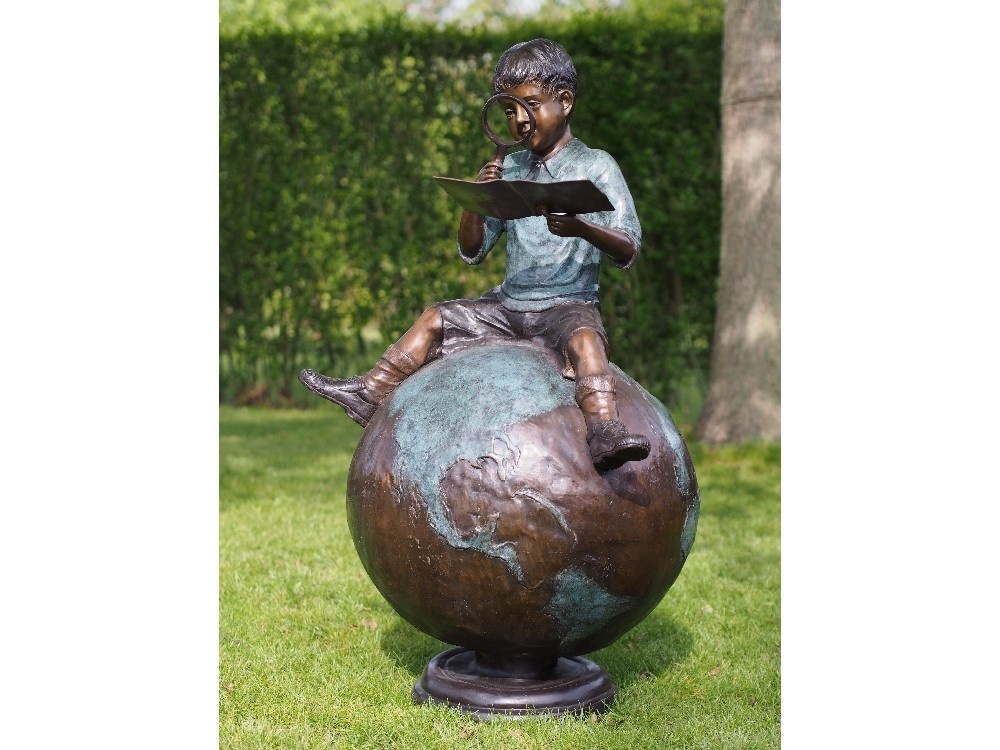Bronzen jongen op wereldbol