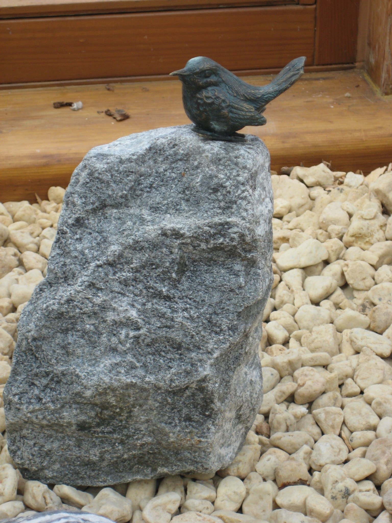 Mooi beeldje van een mus van hoogwaardig brons, op een hoge brok graniet uit het zwarte woud. Dit brons is van hoogwaardige Europese kwaliteit, met een minimale kopergehalte van 75% waardoor een zeer lange levensduur gegarandeerd is. Omdat dit een natuurproduct is, wijkt de vorm en kleur altijd af van de foto.