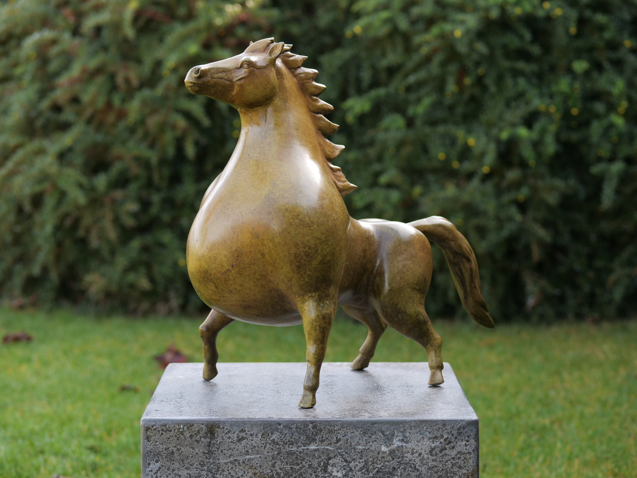 Mooi beeld van een paard van hoogwaardig brons met een minimale kopergehalte van 75% waardoor een zeer lange levensduur gegarandeerd is.
