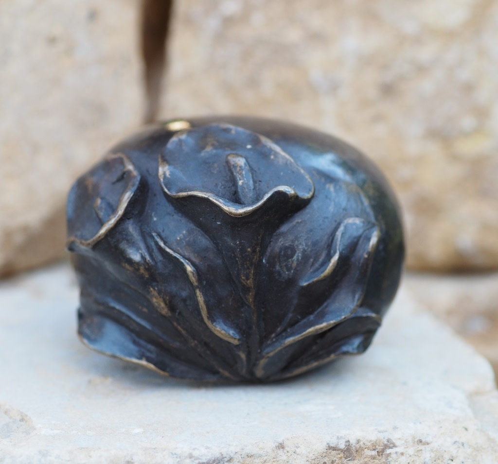 Dit bronzen object is op ambachtelijke wijze gemaakt met de zogenoemde verlorenwas methode.