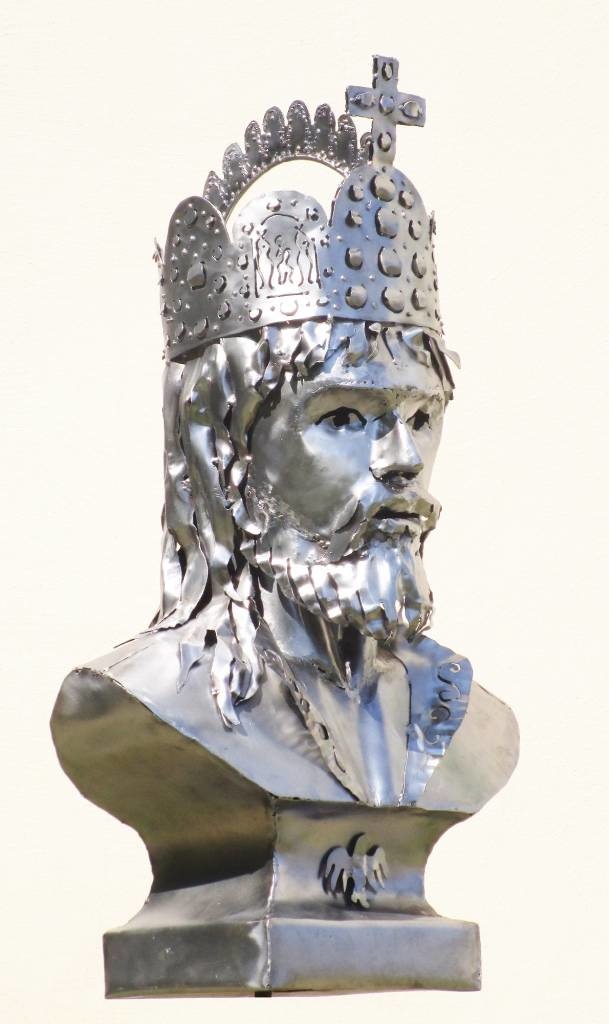 Wij zijn als enigste het verkooppunt van de kunstenaar Rens Jakop. Deze kunstenaar, die onbekend wil blijven, maakt heel mooie dieren en andere sculpturen van ijzer en roestvrijstaal. Wilt u iets unieks in uw tuin, huis of bedrijf, dan bent u er zeker van dat deze buste van Karel de Grote nergens anders te koop is !!