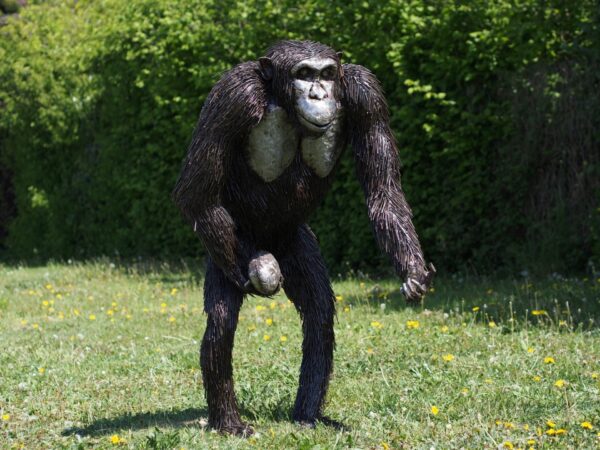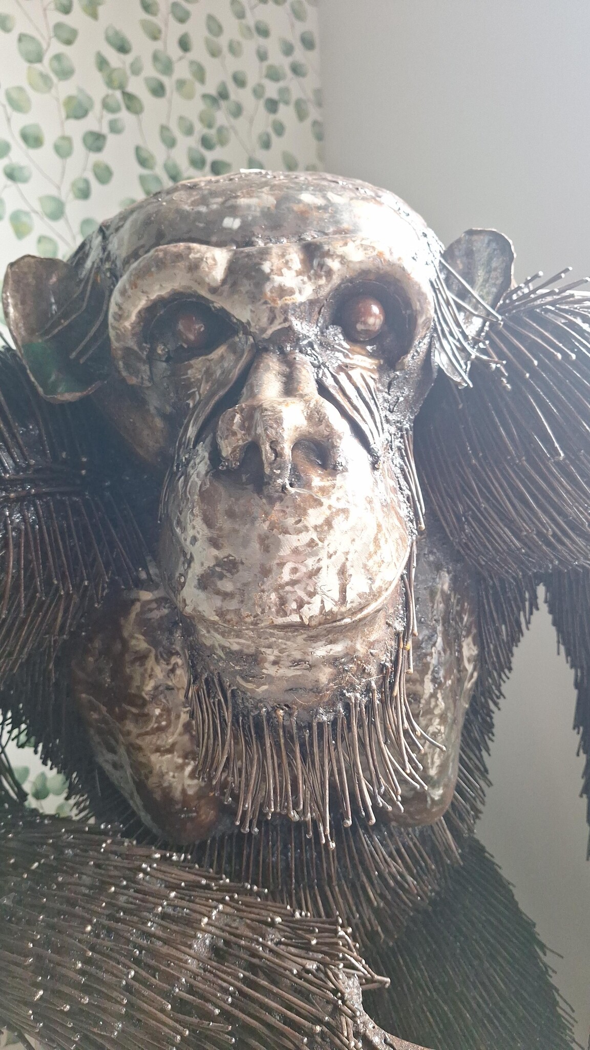 Het zijn echte kunstenaars, die dit beeld van een levensgrote chimpansee gemaakt hebben. Als je dit beeld lang bekijkt ga je beseffen hoeveel werk het is om een kunstwerk als dit te maken. Kloppen, buigen, lassen, meten, het is echt een gigantisch werk. Wilt u iets unieks in uw tuin of bij uw bedrijf, dan bent u er zeker van dat dit model zeer zeldzaam is en niet zomaar te koop is. !!