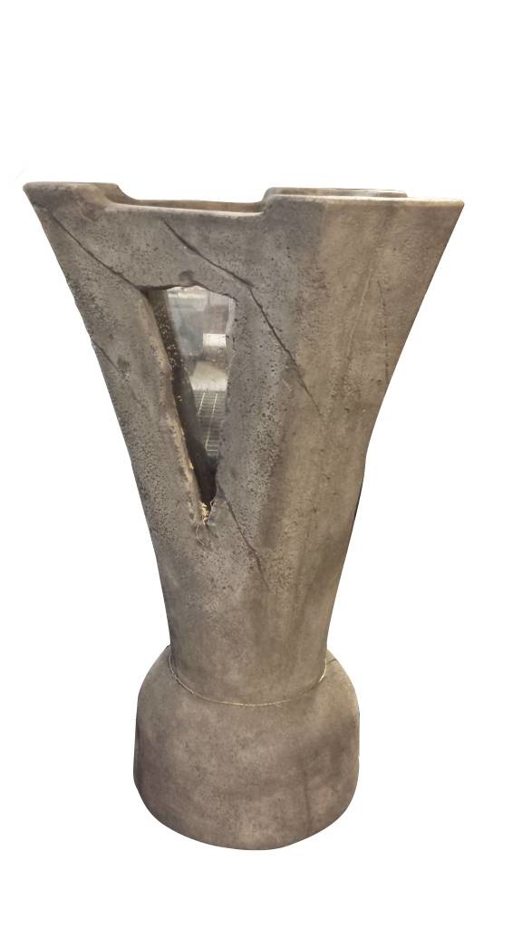 Een echt bijzonder waterornament is dit model; een gietstenen waterornament met vensters aan 3 zijden waar van binnenuit het water omhoog komt. In het donker geeft dit model een bijzondere sfeer doordat het water verlicht wordt door middel van een spot en er luchtbellen omhoog stijgen. Een prachtig panorama die aan 3 zijden te zien is.