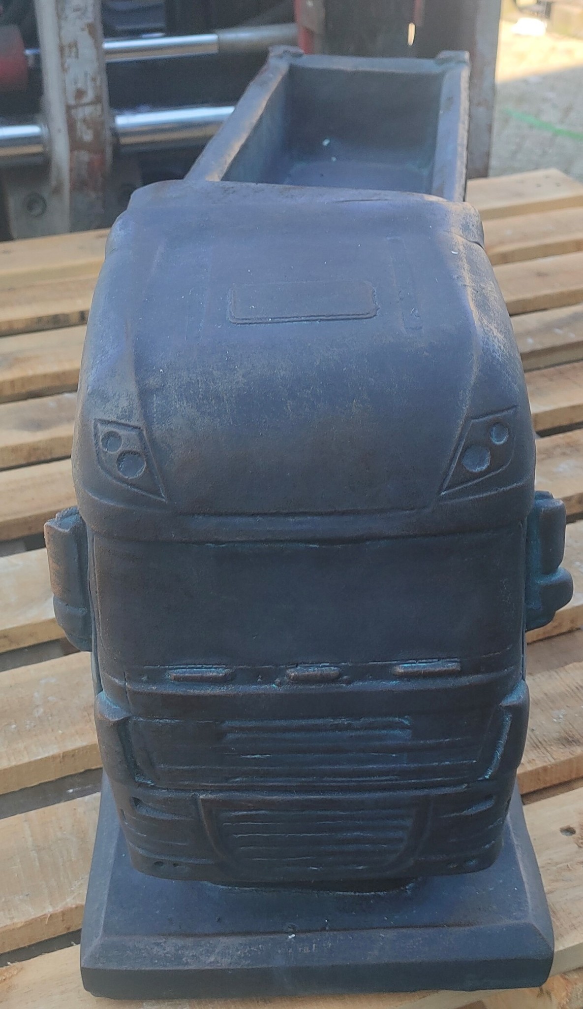 Betonnen daf vrachtwagen met oplegger, in brons kleur. totale lengte ca 80cm.Zeer mooi gedetailleerd.