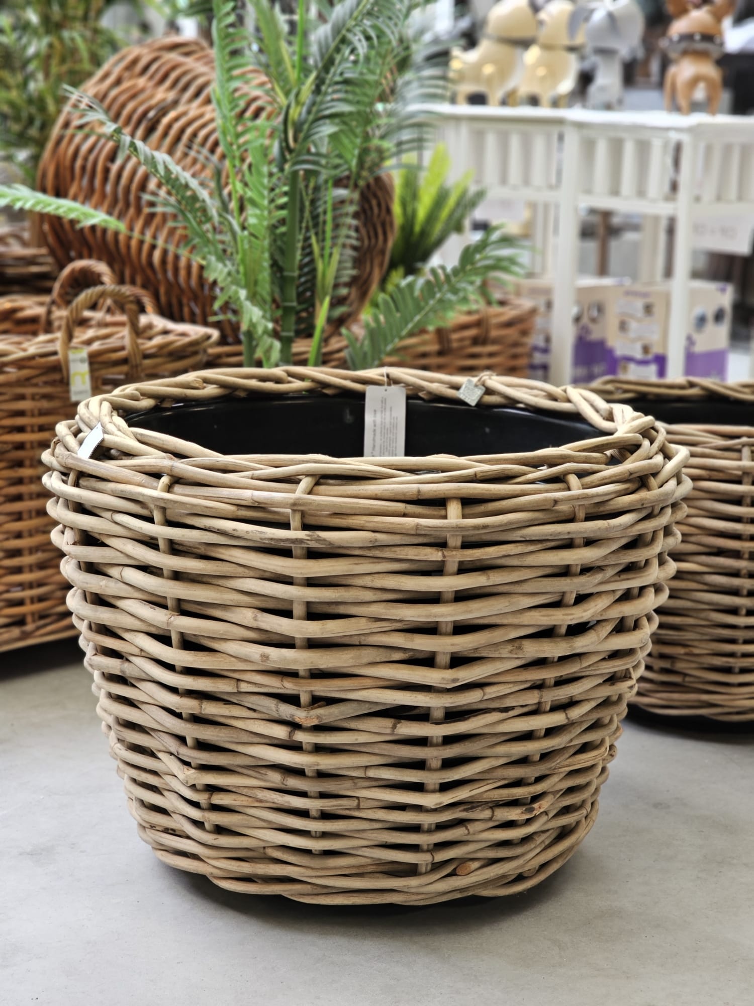 Omdat deze manden met de binnenpot rechtstreeks op de grond staan, zullen deze manden zeer lang meegaan, omdat het rotan niet met de grond in aanraking komt.