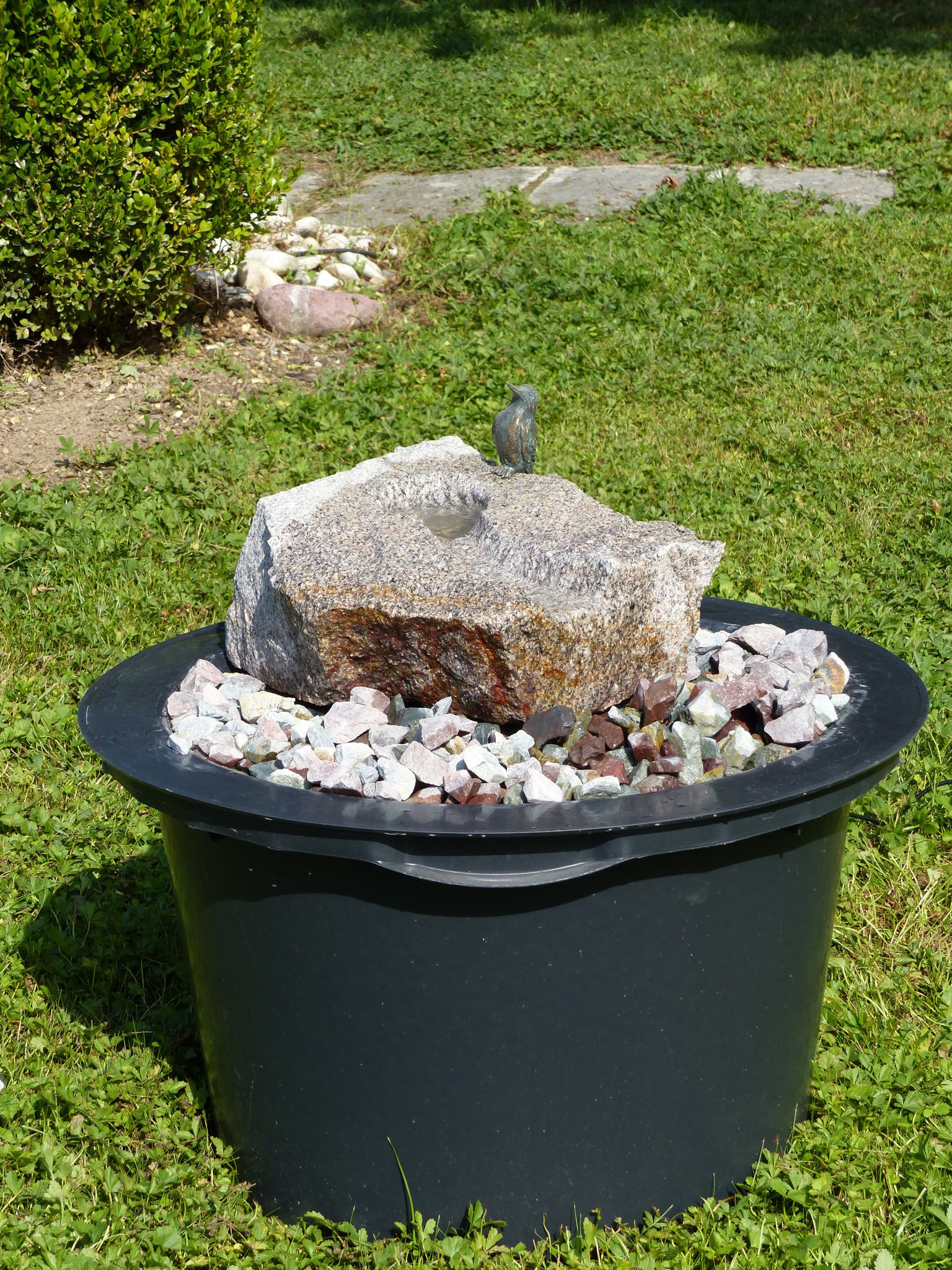 Complete fonteinset, om jarenlang van dit waterspel te genieten in uw tuin. Steen is van graniet, waarin een beekje is gemaakt, met daarop een ijsvogeltje van echt brons. Vogels zullen van dit waterobject in de tuin ook zeker genieten.