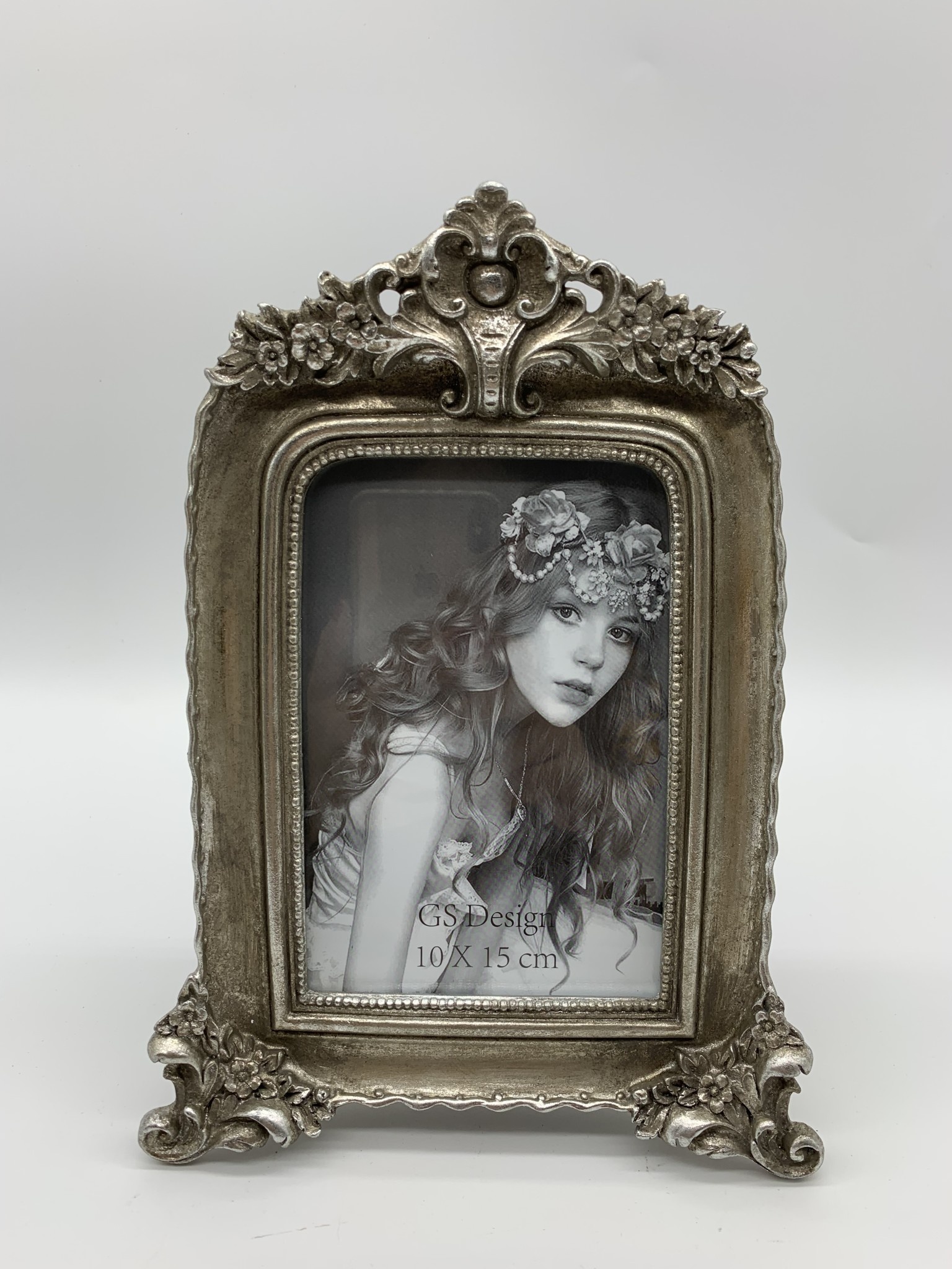 Geef uw prachtige foto een omlijsting die het verdient. Deze oud-zilver kleurige fotolijst met klassieke uitstraling en sierlijke randen verdient een mooie plaats in uw woonkamer, huiskamer, keuken of slaapkamer.