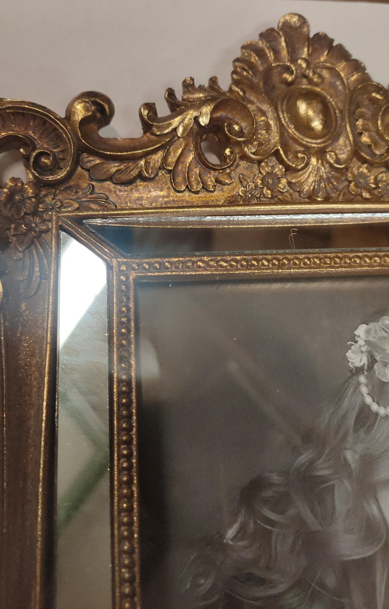 Doe uw foto in en klaar is Kees. Deze oud-zilver kleurige fotolijst met krullen, ornament en spiegelranden verdient absoluut dan een mooie plaats in uw woonomgeving.