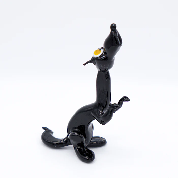 Bekijk een goed hoe verfijnd onze glaskunstenaar te werk is gegaan, hoe klein de details zijn van deze glasminiatuur van een grappig wolfje zijn.