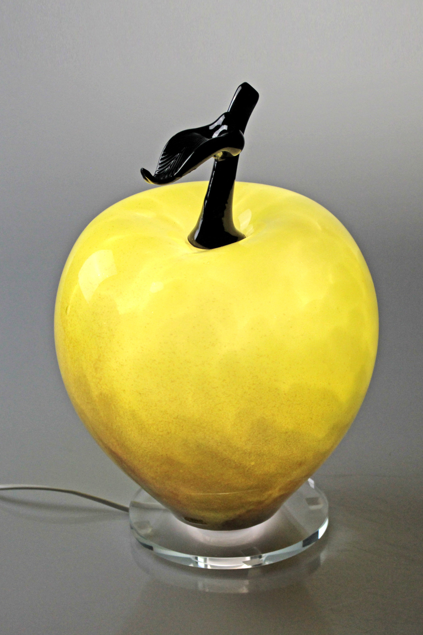 Deze appel gevormde lamp van zeer helder kristalglas is op ouderwetse manier, mond geblazen dus, gemaakt. De gebruikte kleuren in de lamp zijn geweldig mooi en helder, en ademt een zeer warme en vriendelijke sfeer uit.