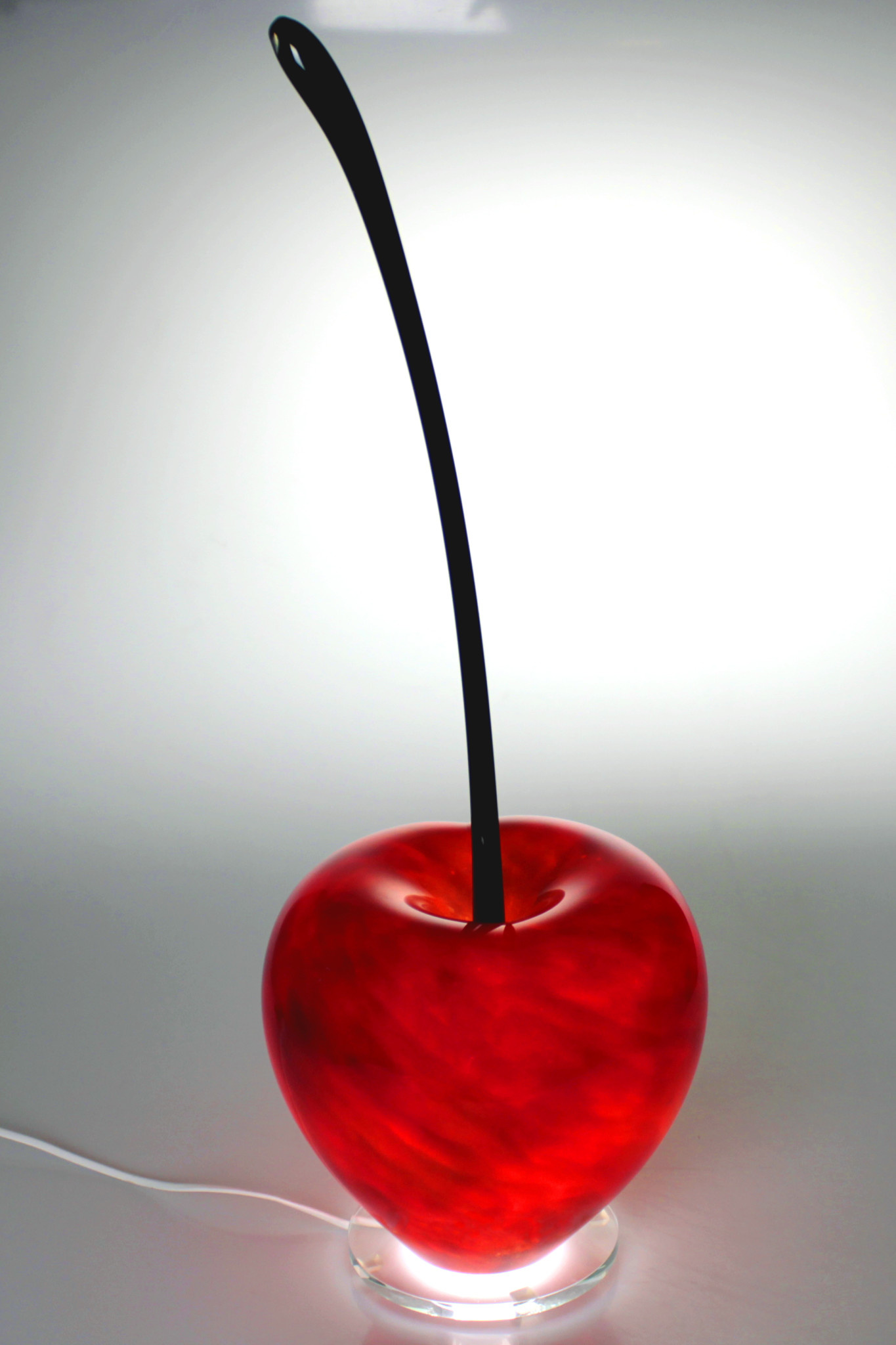 Deze kers gevormde lamp van zeer helder kristalglas is op ouderwetse manier, mond geblazen dus, gemaakt. De gebruikte kleuren in de lamp zijn geweldig mooi en helder, en ademt een zeer warme en vriendelijke sfeer uit.