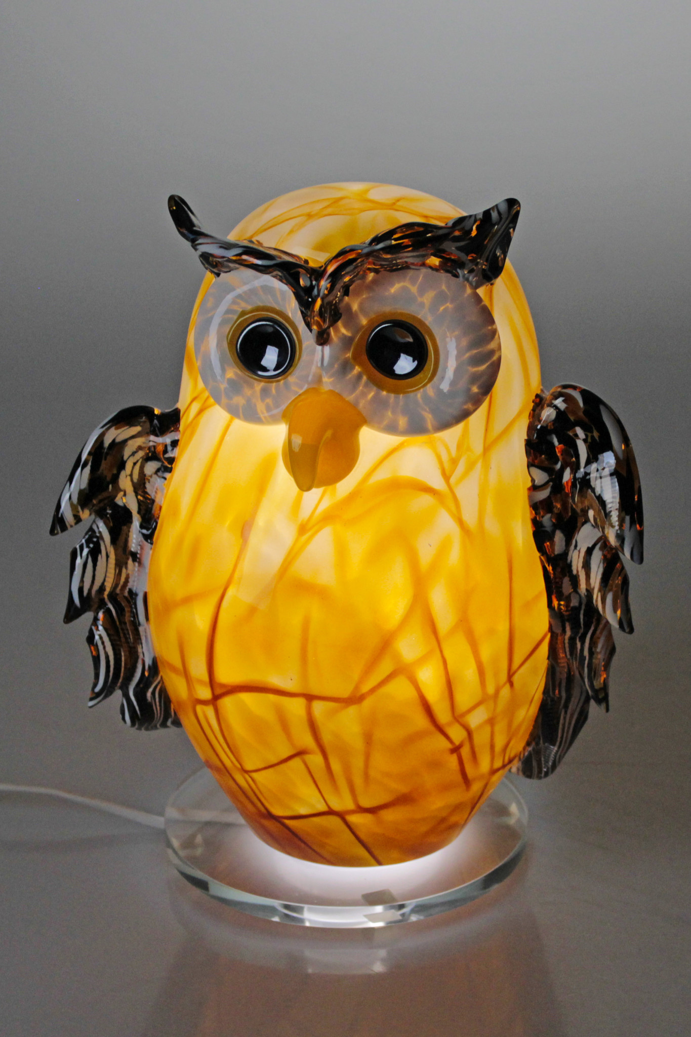 Deze uil lamp van zeer helder kristalglas is op ouderwetse manier, mond geblazen dus, gemaakt. De gebruikte kleuren in de lamp zijn geweldig mooi en helder, en ademt een zeer warme en vriendelijke sfeer uit.