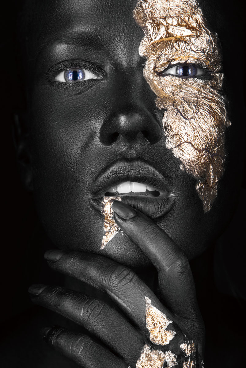 Deze zeer grote glasplaat met een donker gezicht met deels bladgoud kleur.
