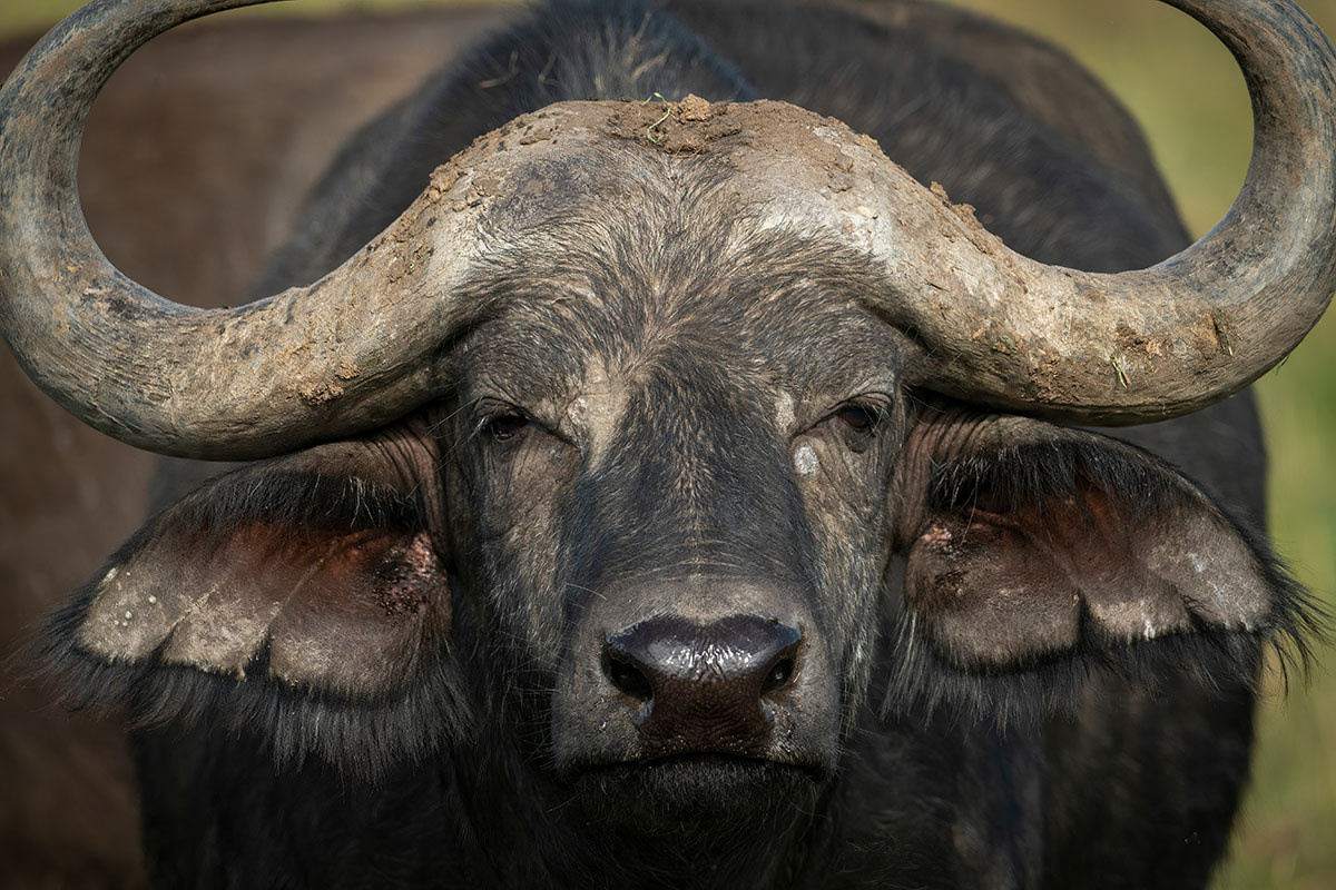 Dit is een langwerpige glasplaat met een grote sterke buffel met grote hoorns.