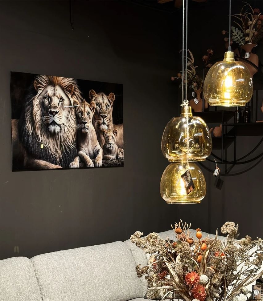 Glasschilderij Leeuwen gezin met 2 welpen 110x70cm