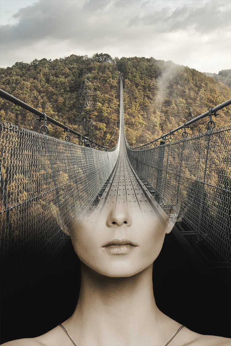 Dit mooie, moderne glasschilderij met de maat 80x120cm is een mooie toevoeging in uw woonkamer, slaapkamer of een andere ruimte. Dit glasschilderij met de afbeelding van een vrouwengezicht die abstract is verwerkt in een brug is een haarscherpe afbeelding die als kunst aan de muur mooi tot uiting komt in een strak / modern interieur.