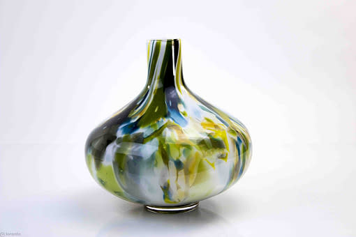 Uniek mond geblazen glazen vaas met een hoogte van 25cm.