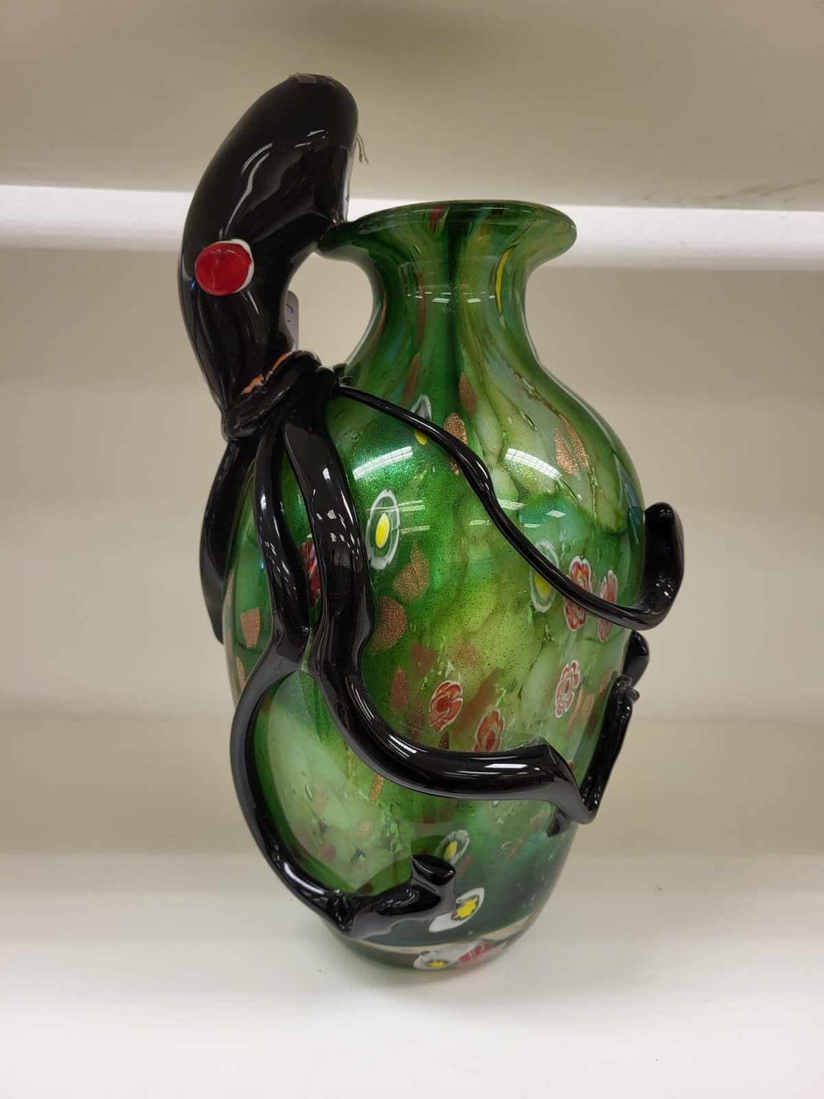 Met de hand geblazen vaas met daarop een octopus.