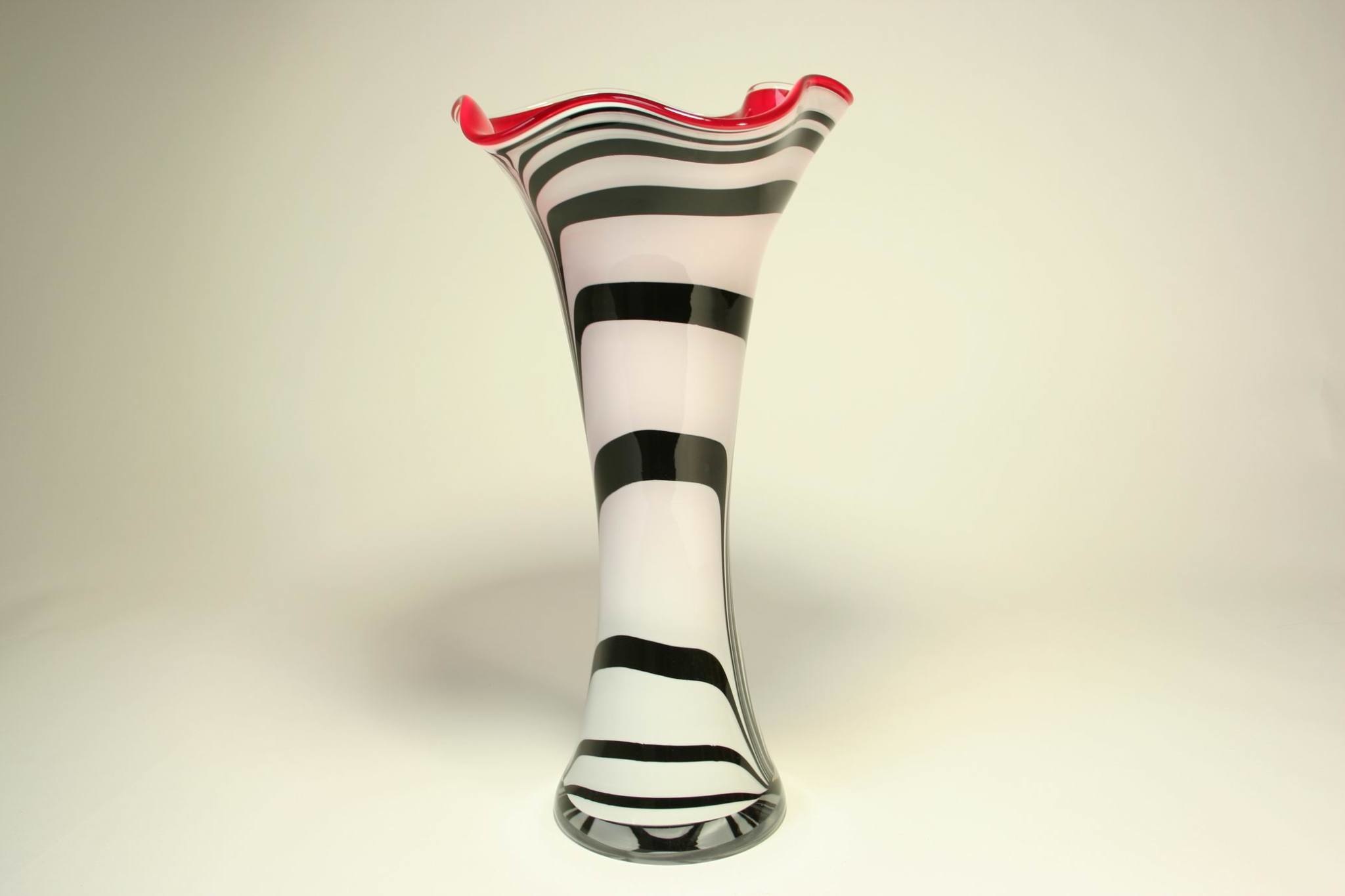 Prachtig mond geblazen siervaas met zebra print met een hoogte van 40cm.